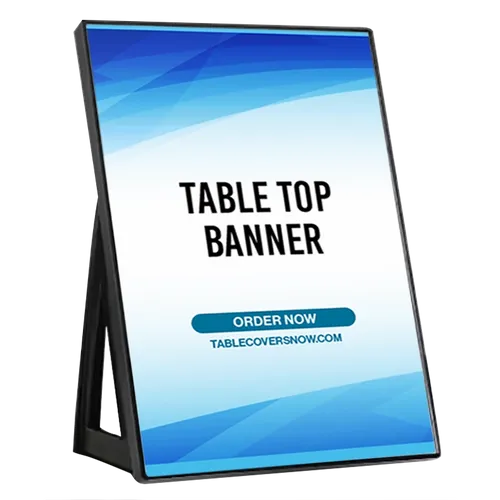 Want to add a matching addition to your table covers? Check out this Plastic Desk Display.