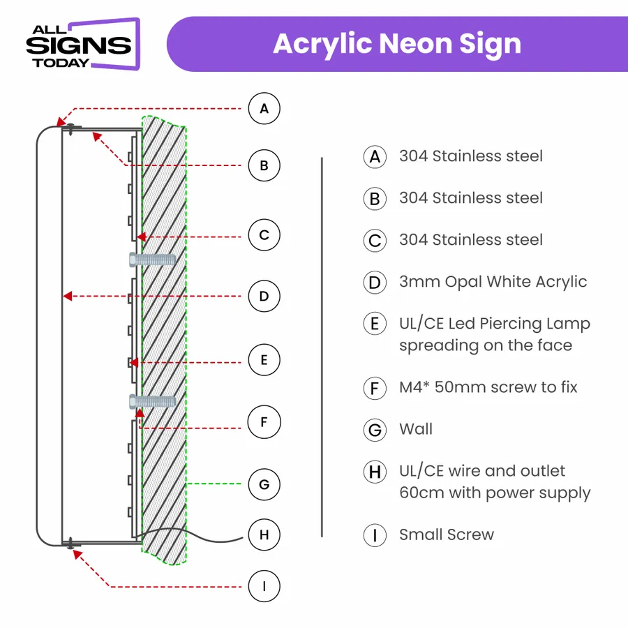 Made from high-quality acrylic, our LED neon sign offers a stunning alternative to traditional neon lights. The use of LEDs ensures energy efficiency and a longer lifespan, so you can enjoy its radiant charm for years to come without worrying about frequent replacements.