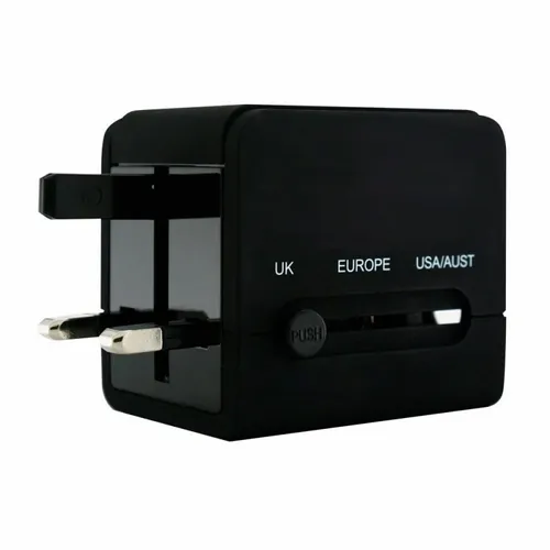 This universal travel adapter covers more then 150 country's wall adapters. Includes two built-in USB ports that allow you to charge two devices simultaneously. Perfect for anyone who is always on the go.