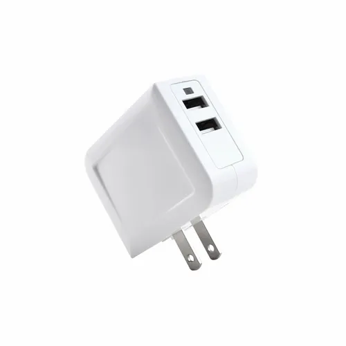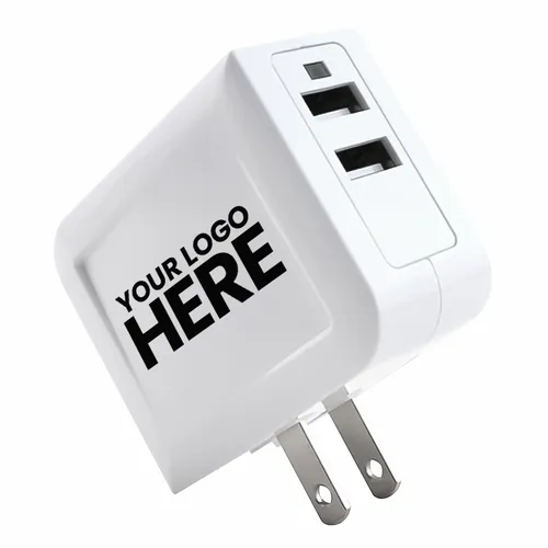 This folding Dual Port USB AC Adapter will power up your Smartphone and other devises. Compact, folding design makes it easy to take with you wherever you go. E474815, Model# HLT-320