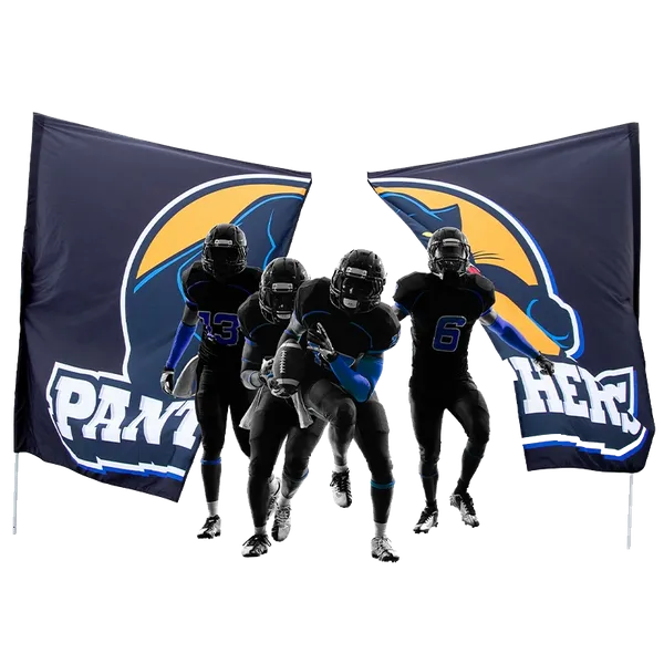 Breakaway banners usually come with poles that are inserted into pole pockets located on each side and are usually held by two people during the running-through process. These banners are most commonly used for pep rallies and team sporting events such as football, basketball, and field hockey games.