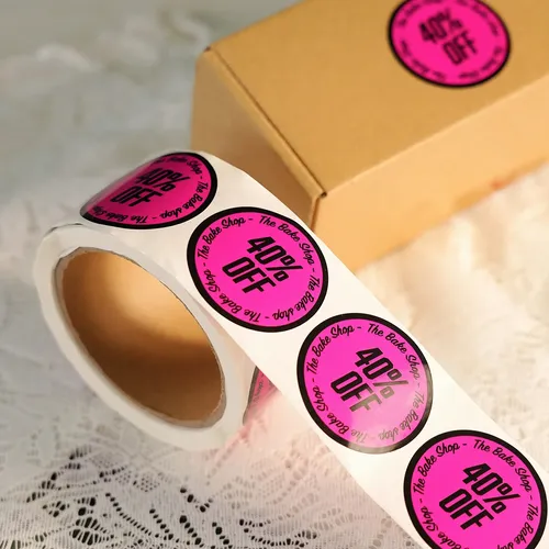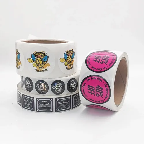 Roll stickers are made on a continuous liner and wound around a cardboard spool. They come in all shapes and sizes and can be printed in full color.