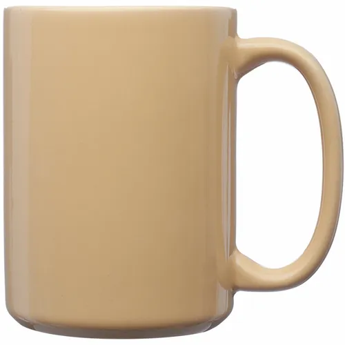 15 oz. Large "El Grande" Logo Imprinted Ceramic Mugs.. Smooth Molded Ceramic Composite. Glossy Color Exterior with Matching Color Interior. Easy Comfort Grip C-curved Handle. Recommended Hand Wash Only