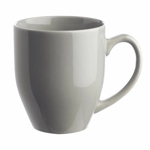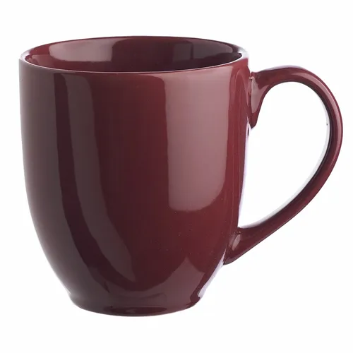 Bistro Style Wide Body Drink Promotional Imprinted Coffee Mugs. Smooth Molded Ceramic Composite. Glossy Vibrant Color Exterior Finish. High-Curved Grip for Easy Grab-n-Go Handling. Recommended Hand Wash Only
