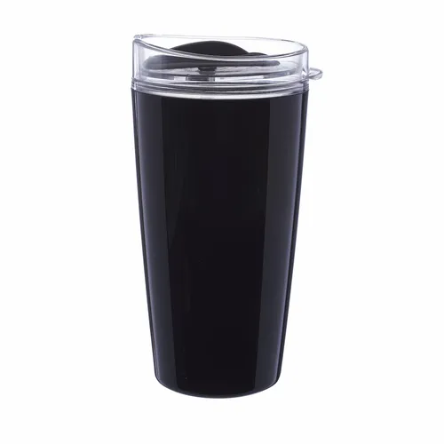 Tritan Material. Double Wall Construction for Insulation of Hot or Cold Liquids. Snap-On, Spill-Resistant, 2-Piece Thumb-Slide Lid. BPA Free. Made in the USA
