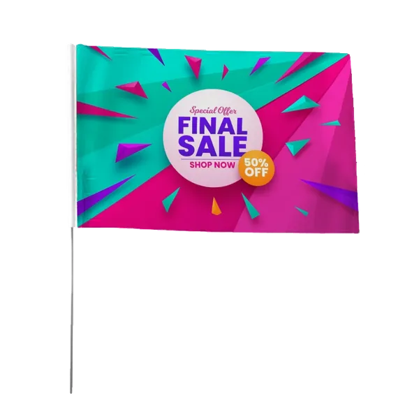 A custom flag is a traditional yet still super effective way to advertise your brand, business, services, and/or products. Flags can generally help in drawing attention to your event, as it’s the most practical way to gain passive attention without trying too hard! Our custom hand flags can definitely help you draw some much-needed attention, especially because they can be customized in a multitude of ways! Our flags are perfect for any event, including but not limited to high school and college sports competitions as well as major outdoor events! Unlimited colors, no setup charge, and a professional graphics team—we can help you bring your design to life here at Custom Flags Now!