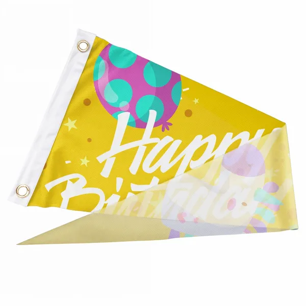 Ready to make a statement? Our vibrant, customizable Pennant Flags are the perfect way to showcase your team spirit, celebrate events, or add a touch of personalized flair to any space. Choose from a range of sizes and hanging options to create a flag that truly reflects your style. Get ready to grab attention and spread your message with these eye-catching pennant flags!