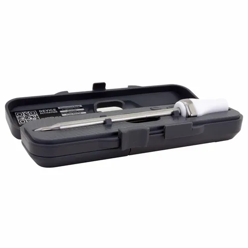 It's a smart BBQ thermometer probe that sends cooking temperature readings to the ToGrill phone app. The perfect tech promo for a wide range of industries related to food or activities such as picnics, camping, and sports.