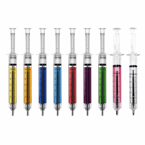 Searching for quality and affordable different kinds of Pens? Here, we offer our Custom Injection Pen also known as syringe pens, this novelty writing instrument designed to resemble medical syringes. They are popular promotional items for healthcare-related events, educational institutions, and novelty giveaways due to their unique and eye-catching design. These pens often come with customizable options, allowing businesses to add their logos and branding to the pens' barrels, enhancing brand visibility in a fun and memorable way.