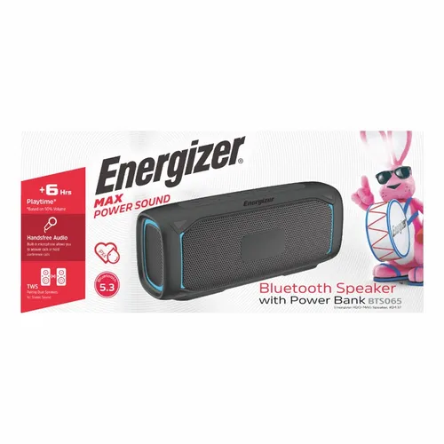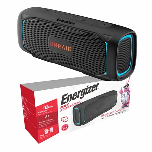 The Energizer Mag-N-Stand speaker is designed for outdoor activities with iPX5 rating. 10 Watts speaker drivers deliver clear and powerful sound. It is not only a speaker with 4000 mAh battery capacity, it has a Type-C port that can charge a phone or other portable devices. It also has strong built-in magnets for easy mounting on golf carts and other metal surfaces.