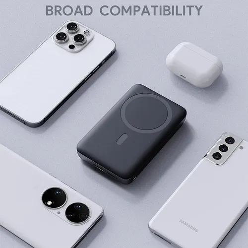 MagSafe Compatibility: Designed specifically for the latest iPhone models, strong built-in magnets allow the power bank to clip on to your MagSafe compatible iPhone, ensuring secure and efficient wireless charging.