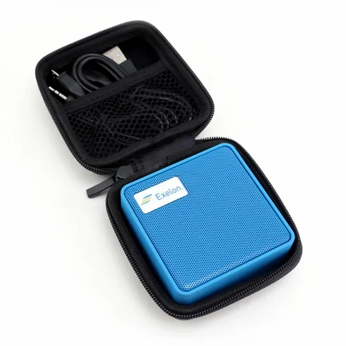 The BlueSQUARE wireless Speaker features great sound quality and up to 6 hours of play time. In addition, a built-in microphone allows you to answer calls with the push of a button. A handy carrying case, instructions, and a USB charging cable are all included.