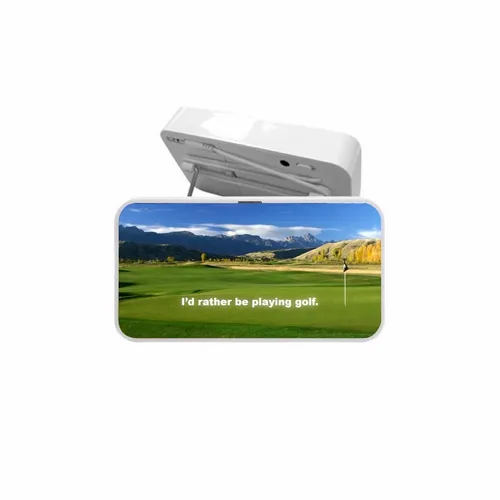 The Cloth Speaker features a large full color imprint area and great sound quality. Compatible with laptops, mp3 players, and most cell phones. Rotatable metal holder can be put on the table or hung onto a hook. Can be used for over 8 hours with 2 AAA batteries (included).